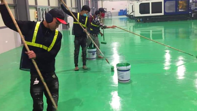 Dụng cụ thi công : Cọ, ru lô, máy phun sơn bằng điện hoặc máy nén khí.
